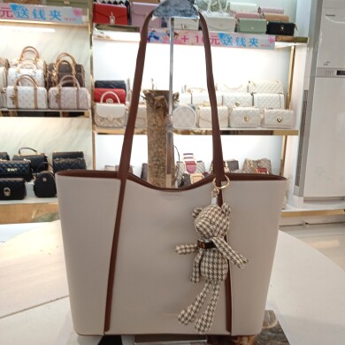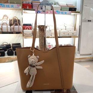 专柜正品 单肩包大容量托特包气质软皮布偶挂饰高级感 女包新款