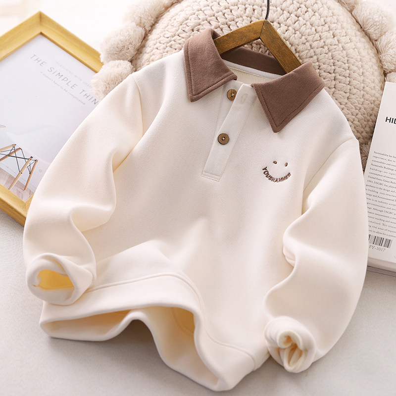 男童加绒卫衣秋冬男大童时尚 上衣 翻领加厚保暖休闲帅气儿童POLO衫