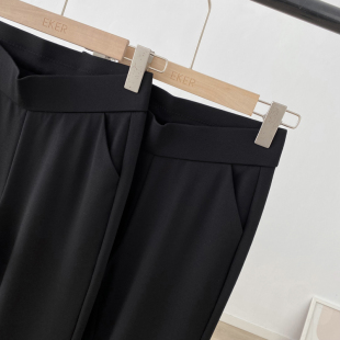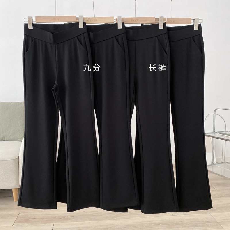 可选 秋高腰休闲超模裤 喇叭小黑裤 内里包边 女 高弹 九分&长裤