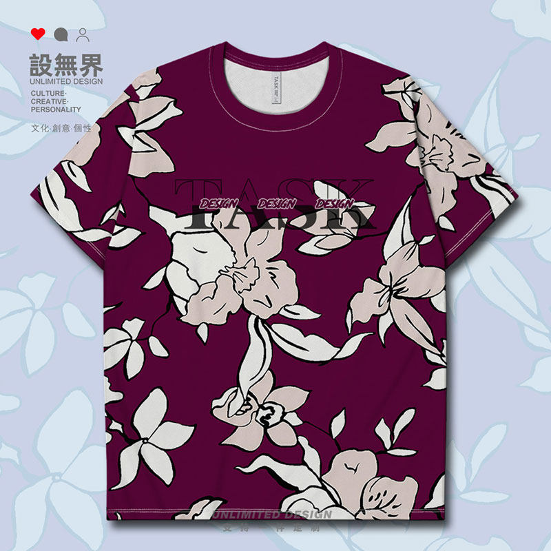 花纹ART植物笔触细糅画作灰速干T恤男女小清新短袖 无界 衣服潮设
