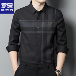 商务休闲格子免烫衬衣高级感爸爸装 罗蒙无痕衬衫 新款 春秋季 男长袖