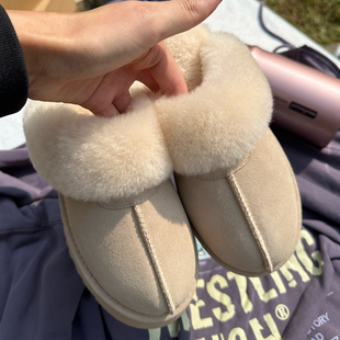 室内家居保暖加绒加厚外穿毛毛拖男 新款 红豆棉拖鞋 女包跟2025冬季