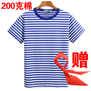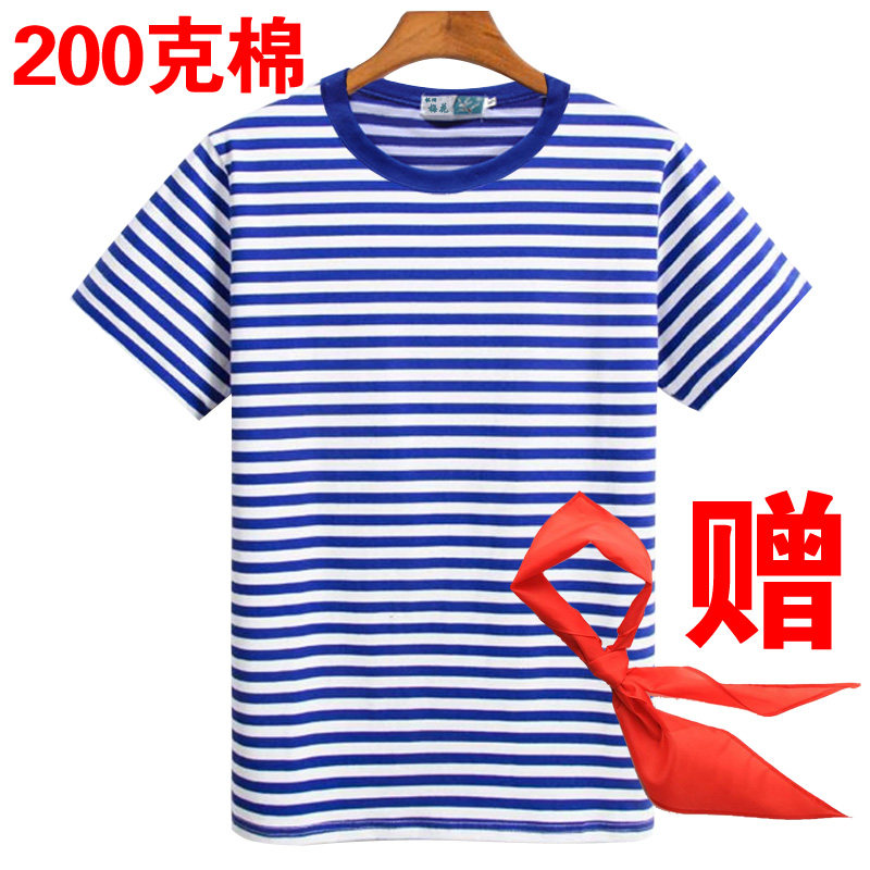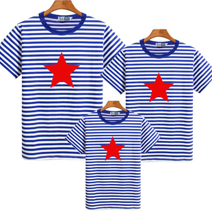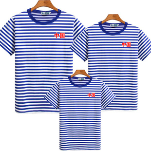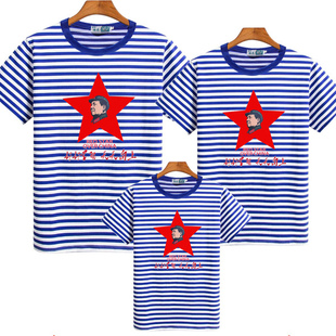定制LOGO字 水手服幼儿园服T恤情侣亲子装 纯棉蓝白条纹海魂衫 短袖