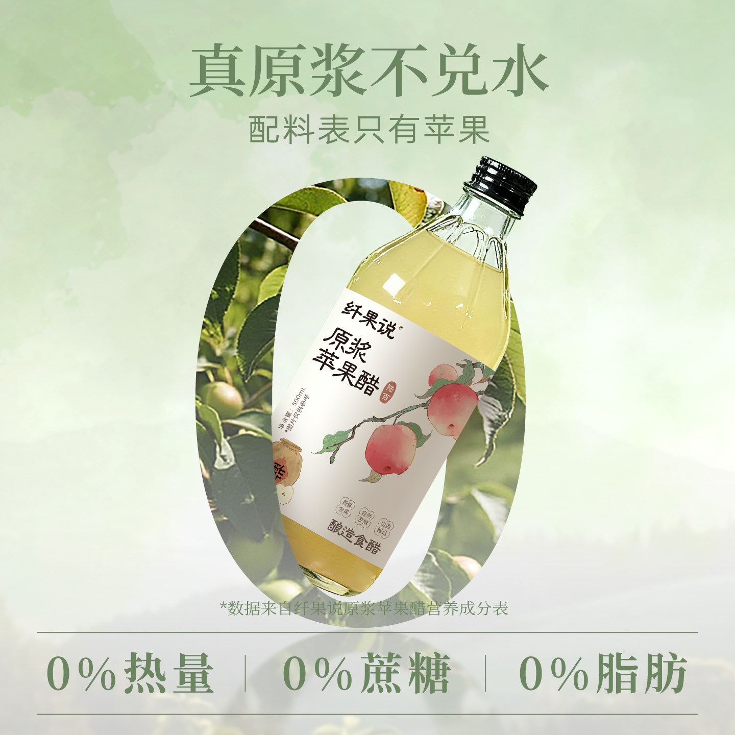 纤果说苹果醋原浆无蔗糖0脂浓缩苹果醋生酮饮料 大容量500ml