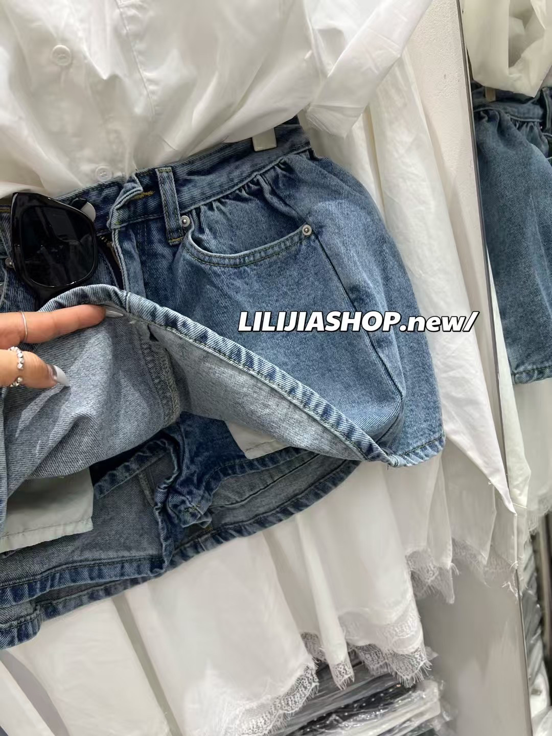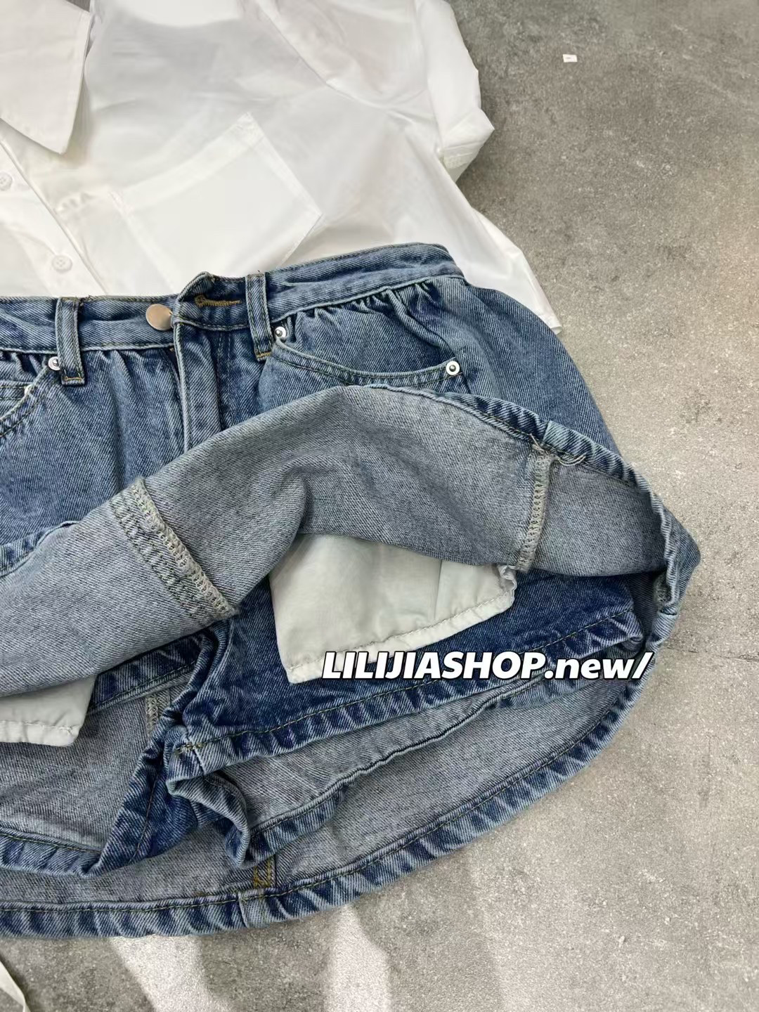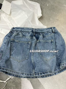 时尚 韩版 2025春夏新款 百搭显瘦高腰设计感牛仔短裙女裙裤 五折