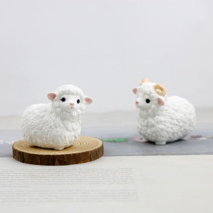 可爱小绵羊陶瓷摆件创意家居饰品生肖小羊马车载摆设办公桌面礼物