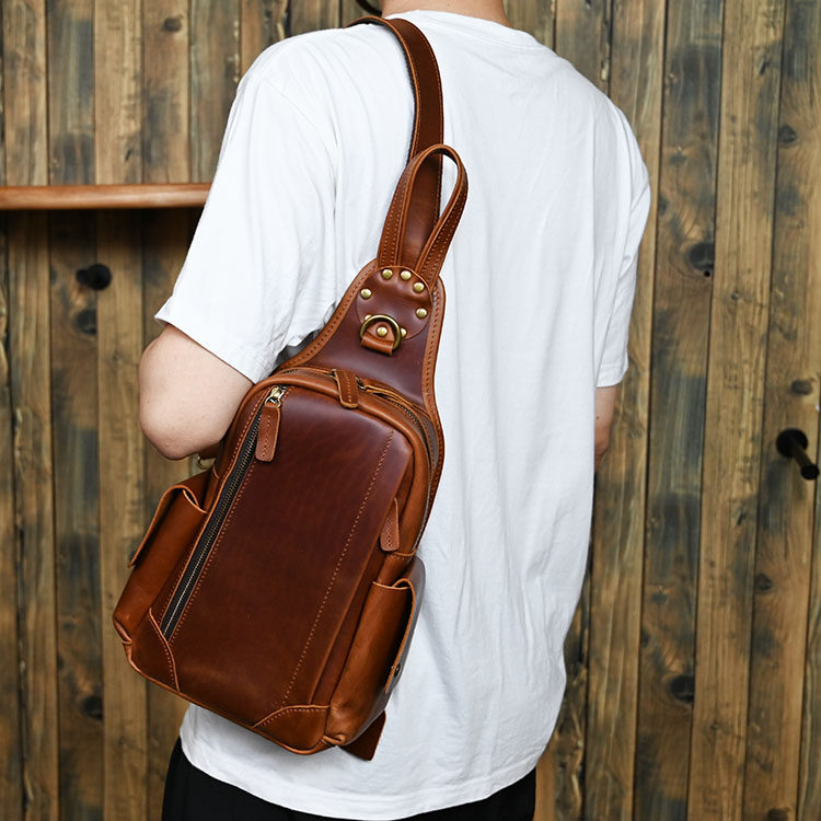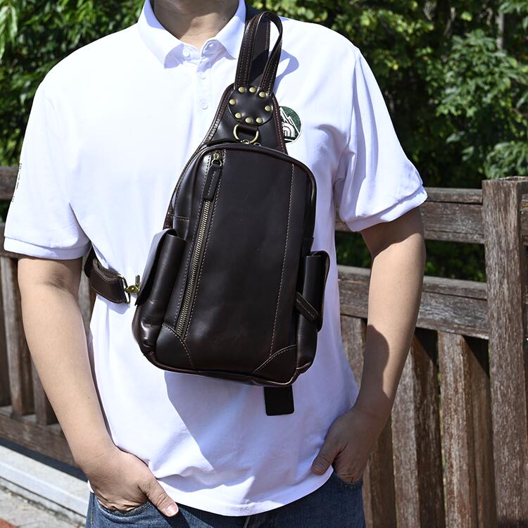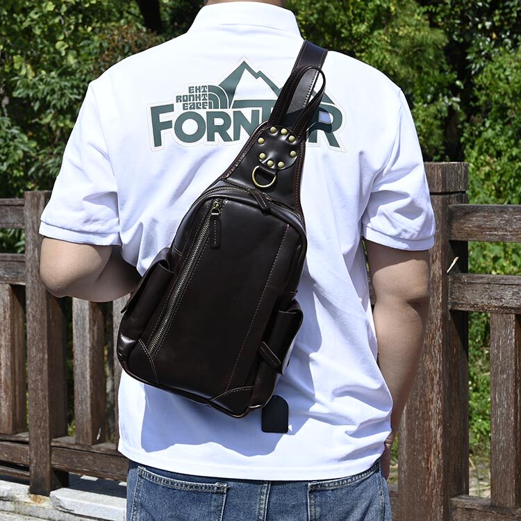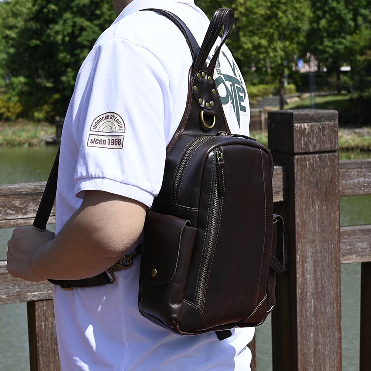 头层牛皮胸包背包休闲男士 包户外肩包真皮斜挎包大容量单肩斜挎包