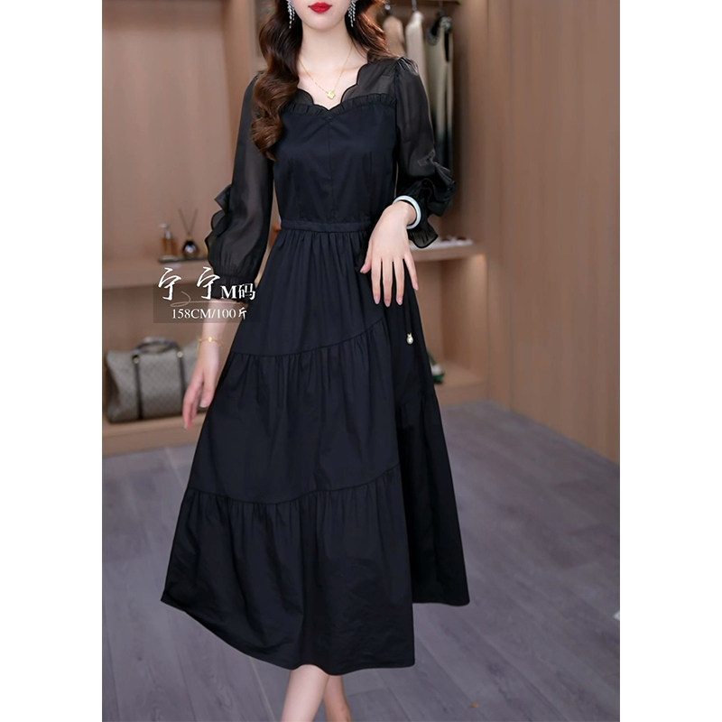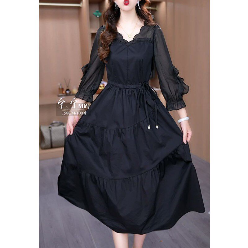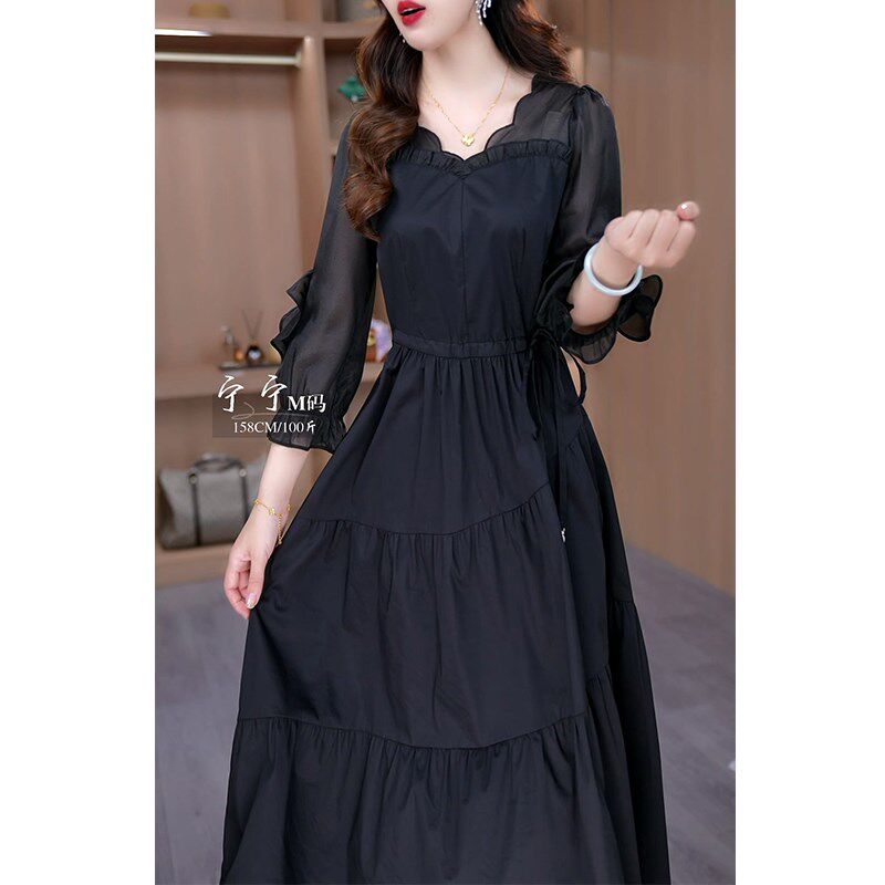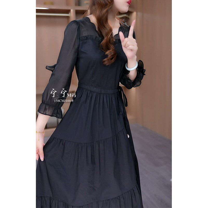 连衣裙女202C5早秋新款 春秋七分袖 气质名媛妈妈显瘦黑色 时尚 新品