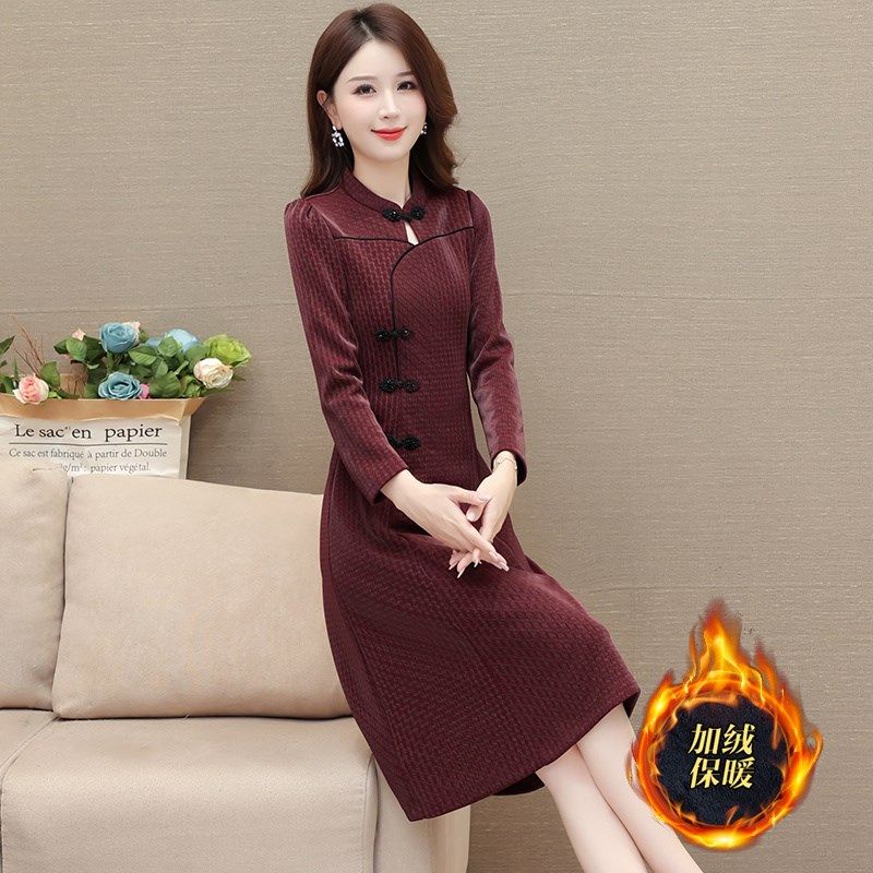 修身 气质镂空改良旗袍连衣裙女2025秋冬新款 加.厚保暖妈 时尚 新品
