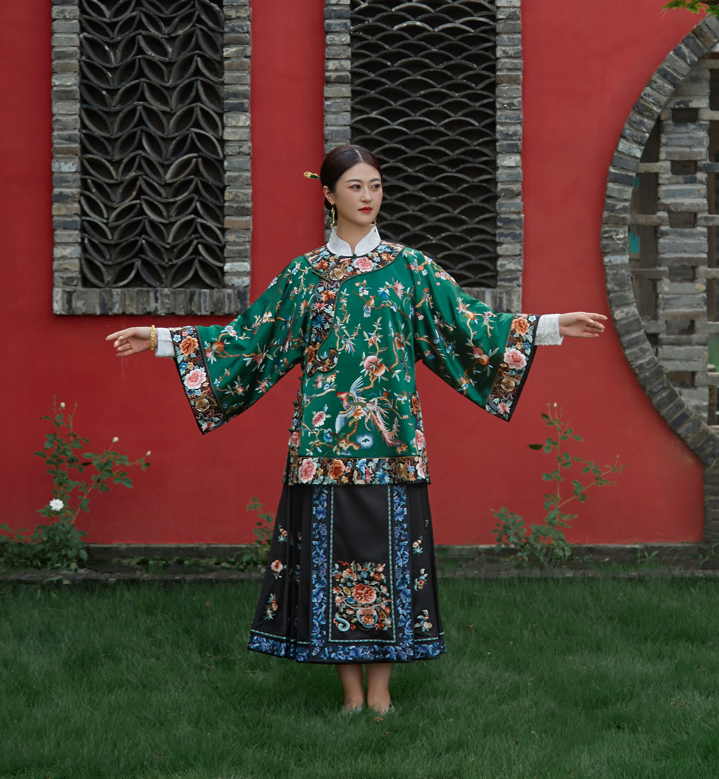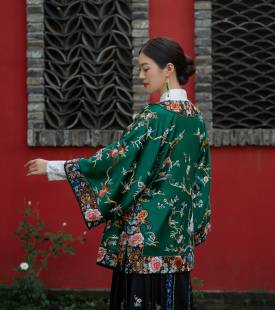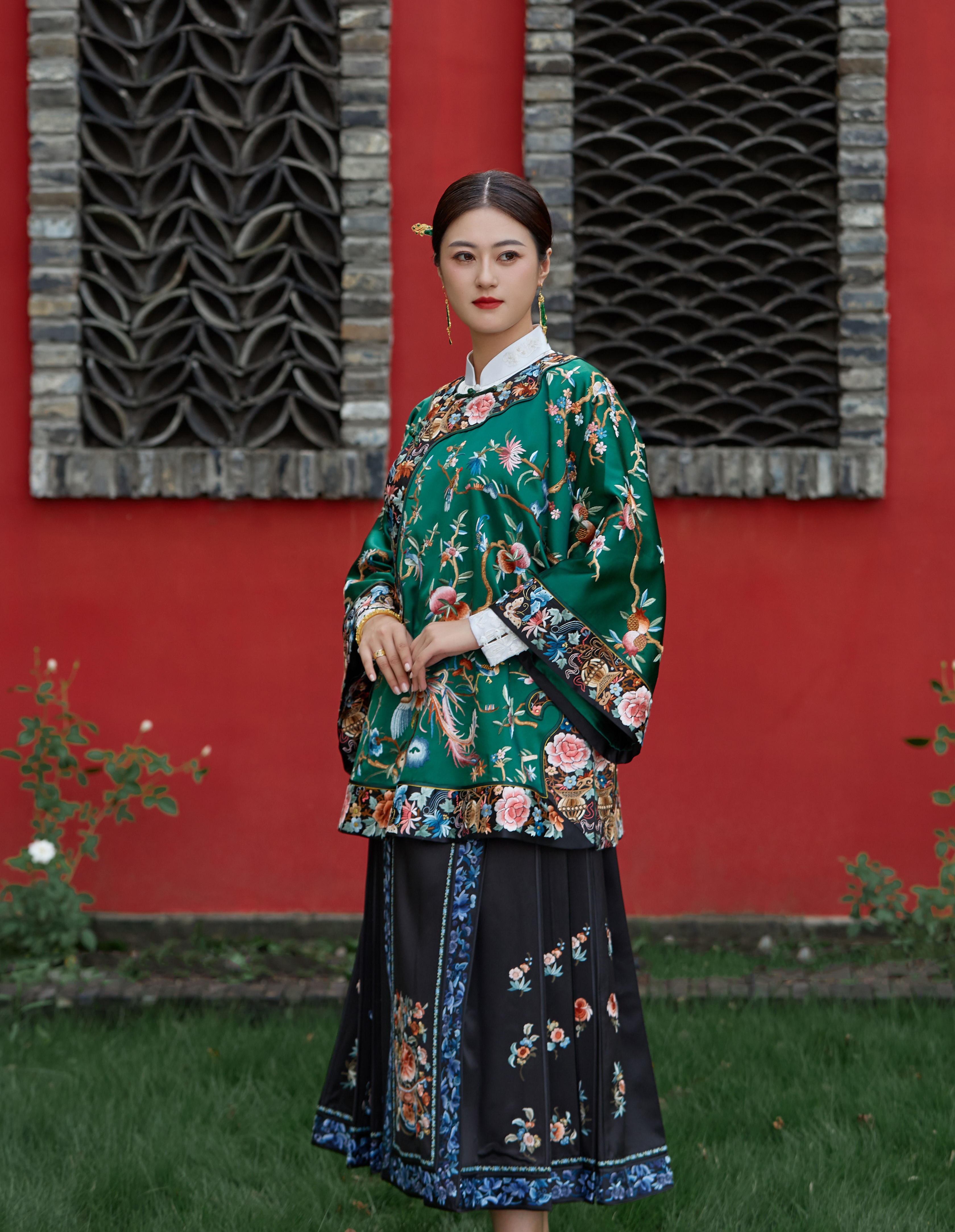 娇古苏绣纯手工刺绣百鸟献福圆领斜襟复刻版 氅衣搭配马面裙