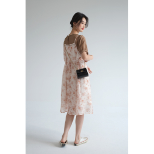 减龄淑女连衣裙 洋气假两件碎花吊带裙胖mm夏装 蓝若水大码 女装