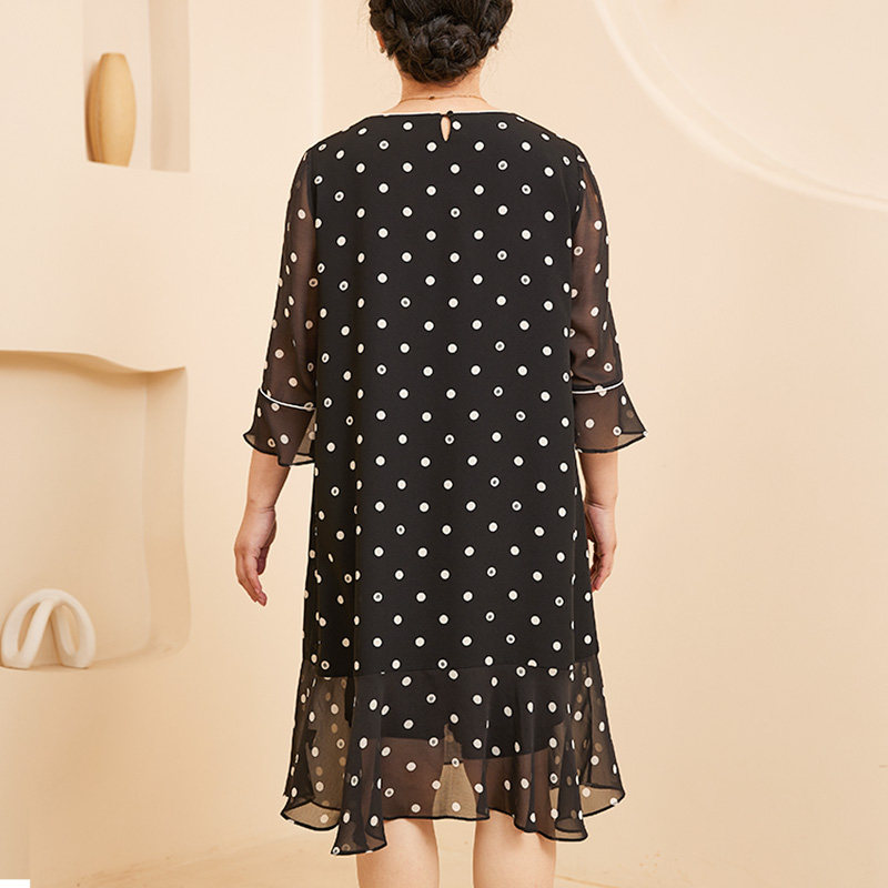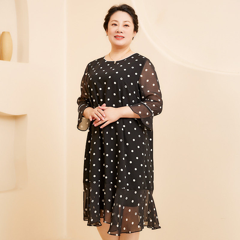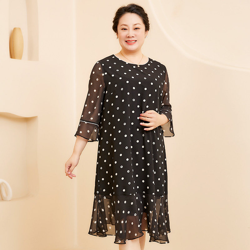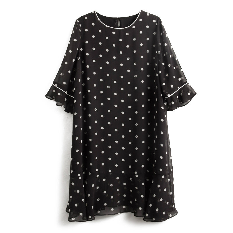 圆领波点图案荷叶袖 胖太太大码 新款 夏季 边连衣裙潮424107840 女装
