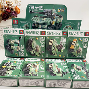 新款 陆战车男孩玩具8合一颗粒拼插兼容积木汽车合体 军事积木轮式