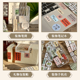 文字书法国风祝福语小纸条标签创意贴画长条封口贴古风诗词装 贴纸学生手账贴纸古风中式 饰 新中式 三年二班