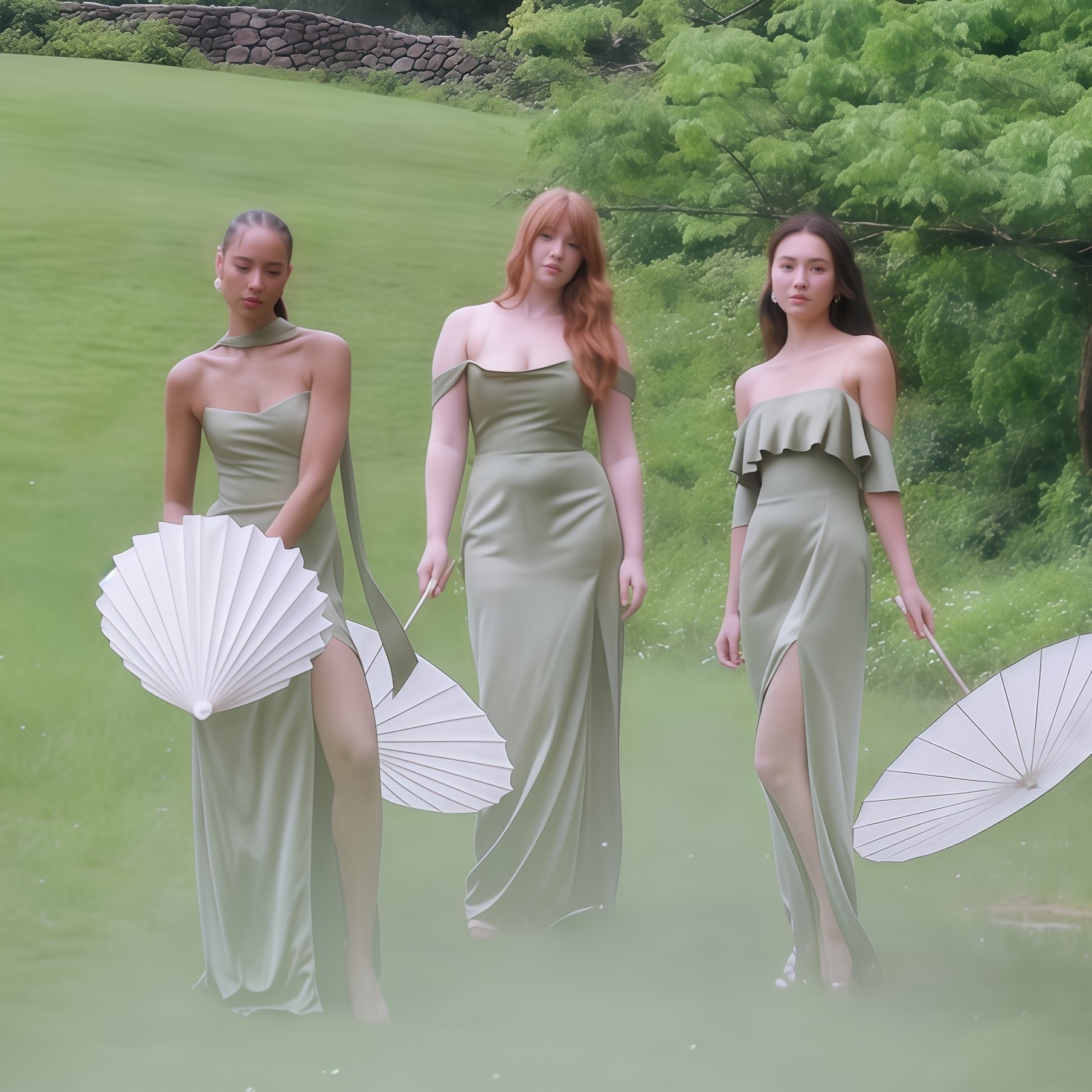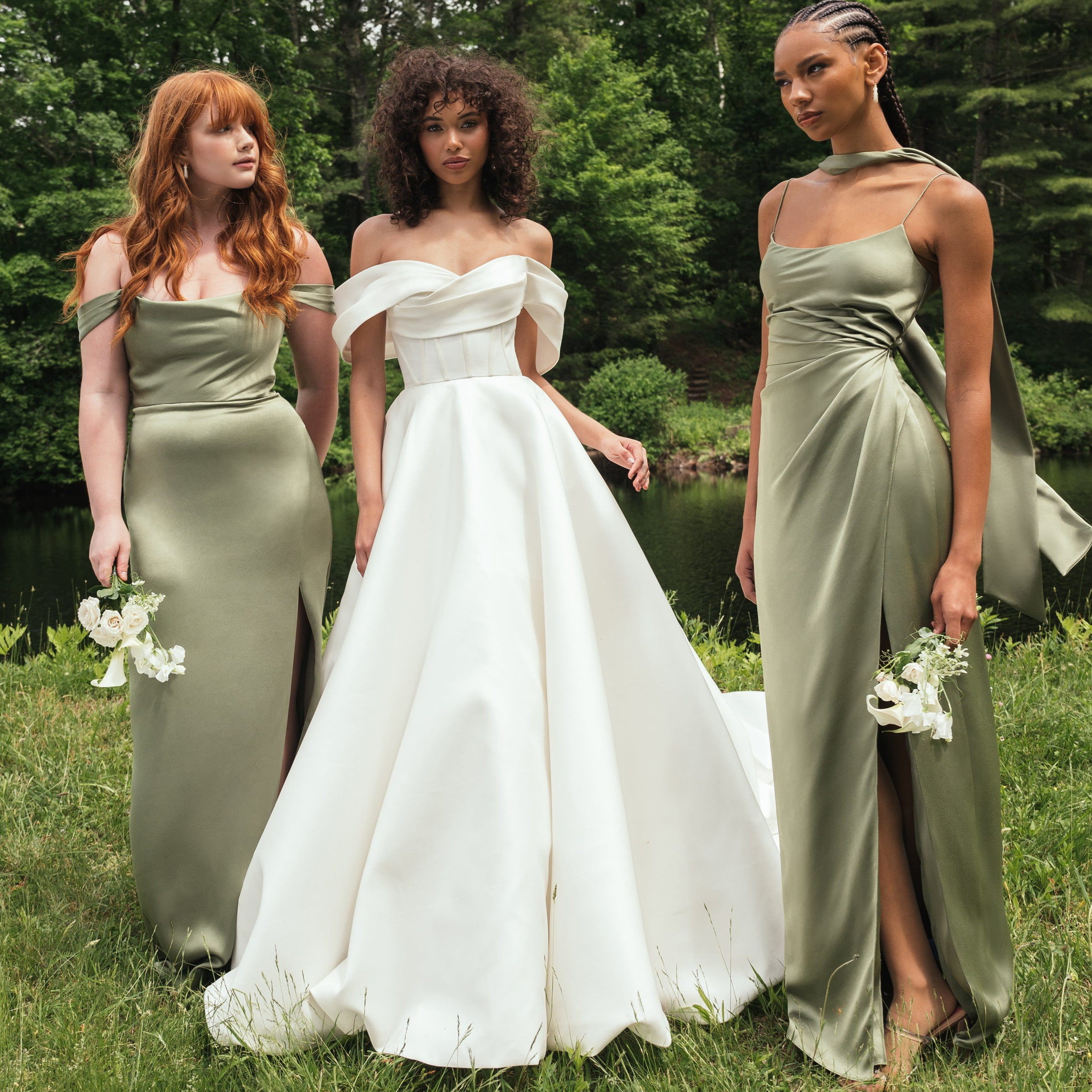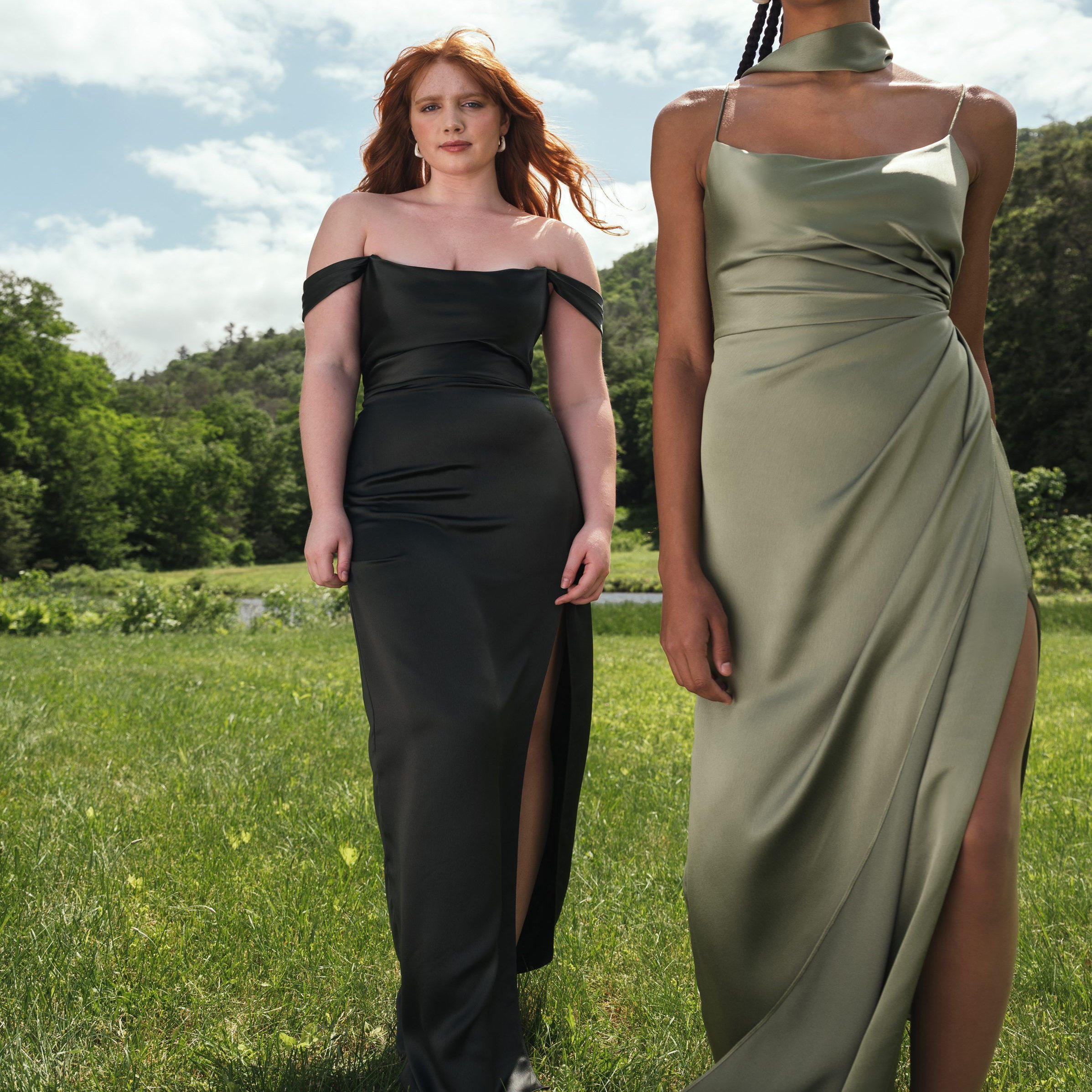 绝美西式 森系绿色缎面伴娘服高端主持人成人礼姐妹伴娘团轻礼服裙