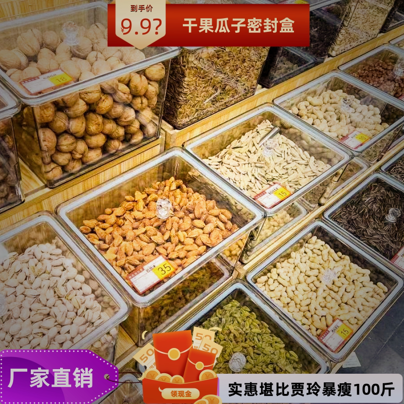 超市干果食品展示盒透明塑料袋盖子陈列货架零食糖干果炒货密封盒