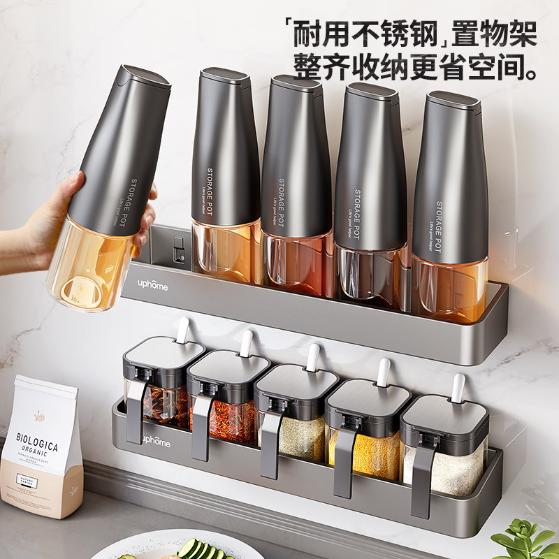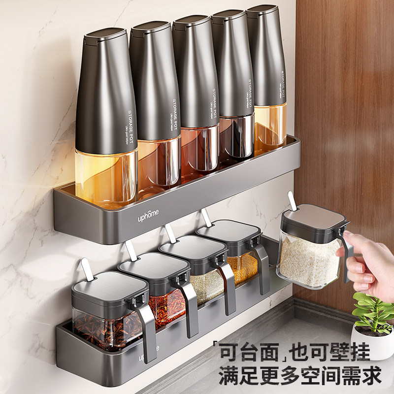 油壶油瓶罐调料盒壁挂组合套装 厨房置物架密封盐罐调味收纳架墙上