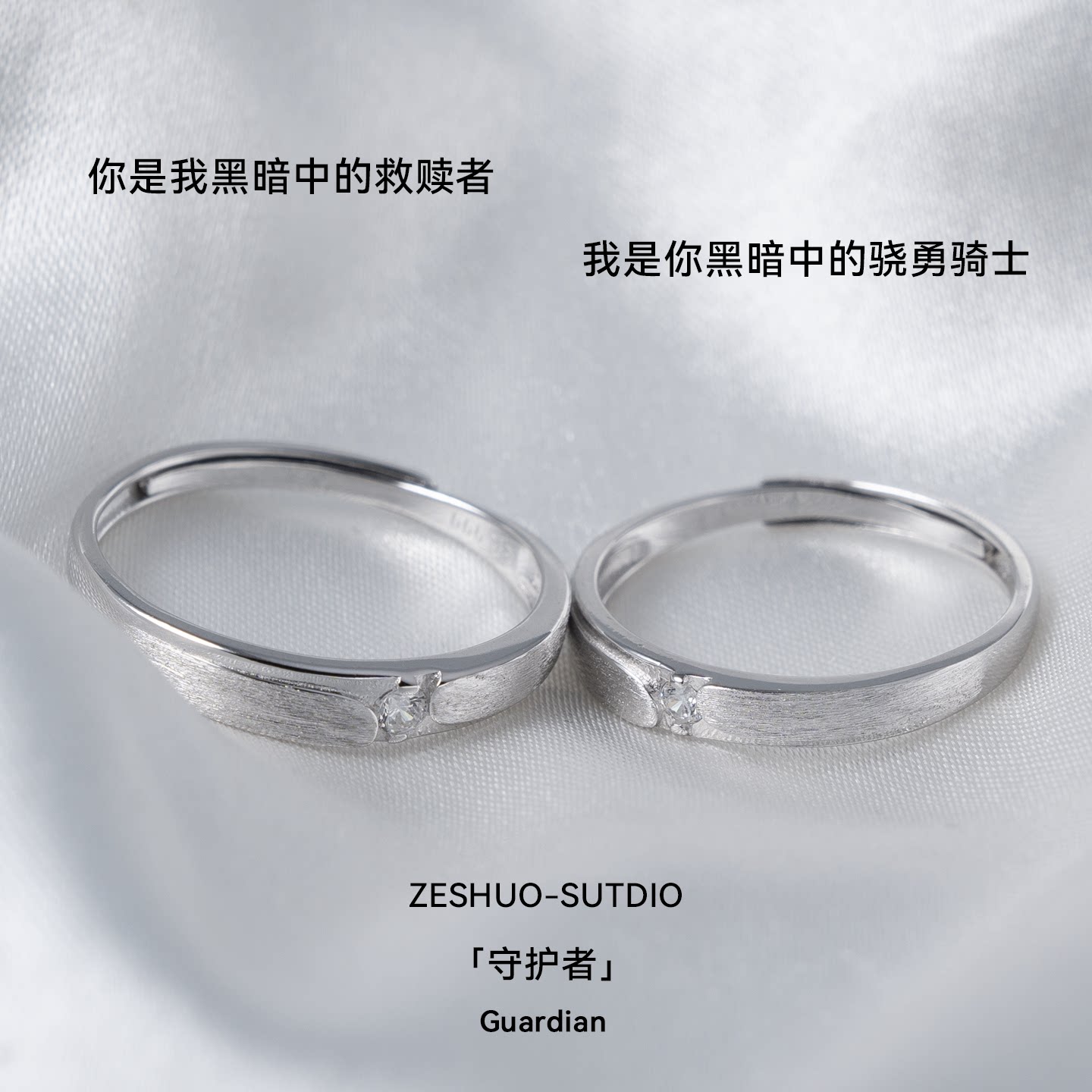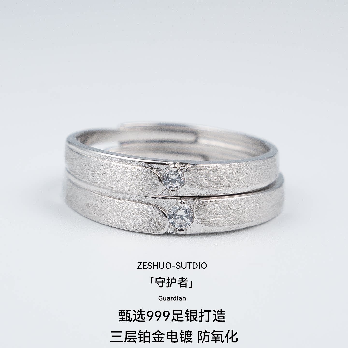 ZESHUO守护者 原创小众设计s999足银情侣对戒高级感镶钻纯银戒指