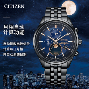 西铁城官方旗舰店光动能月相表电波计时钢带时尚 男表BY1030