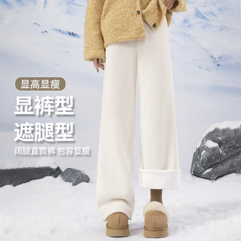 灯芯绒休闲裤 雪中飞加绒裤 雪尼尔运动阔腿裤 2025新款 子女秋冬季