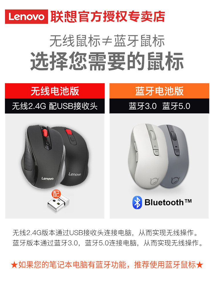 联想小新蓝牙鼠标静音学生商务办公游戏充电款 笔记本电脑无线鼠标