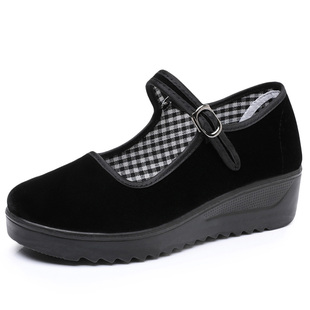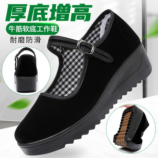 舒适防滑酒店上班鞋 松糕底妈妈女单鞋 女牛筋厚底工作鞋 老北京布鞋