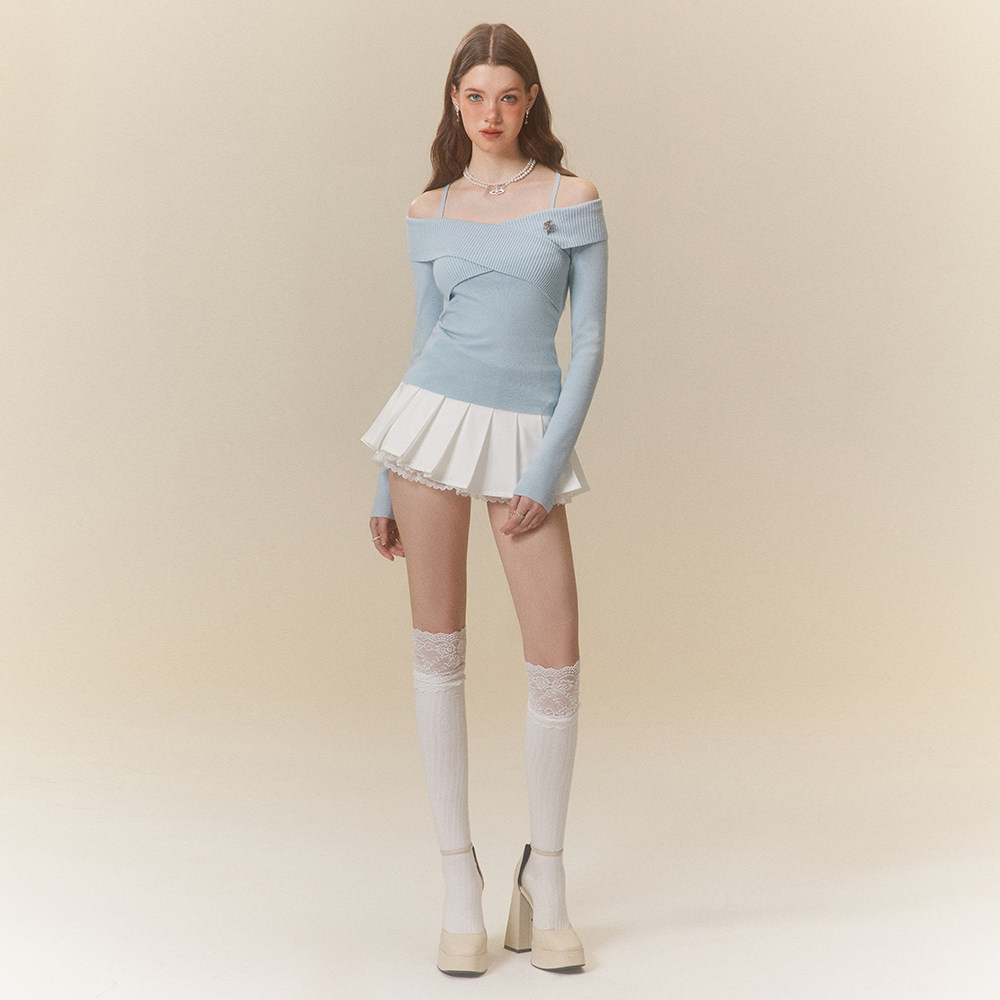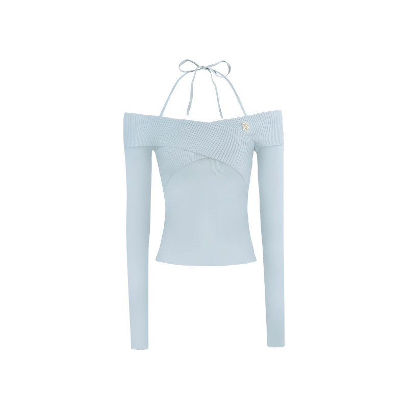 辣妹小众设计感温柔风交叉露肩针织打底毛衣显瘦 美式 Mess Studio