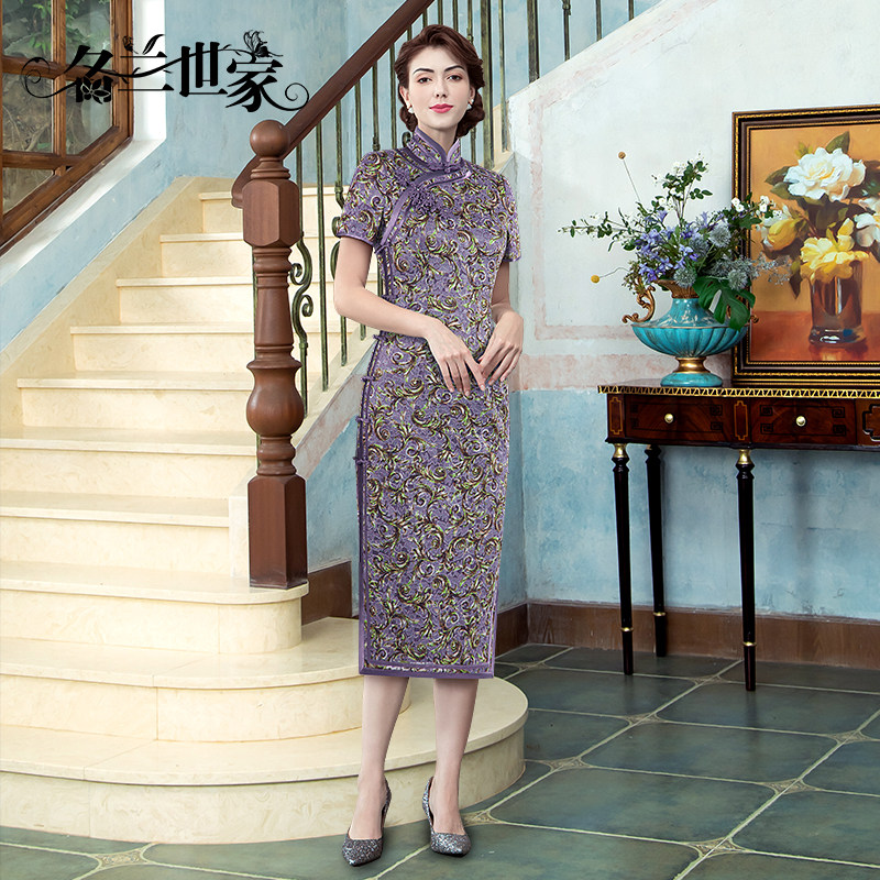 名兰世家新中式 高端日常蕾丝连衣裙原创 旗袍国风宴会礼服优雅修身