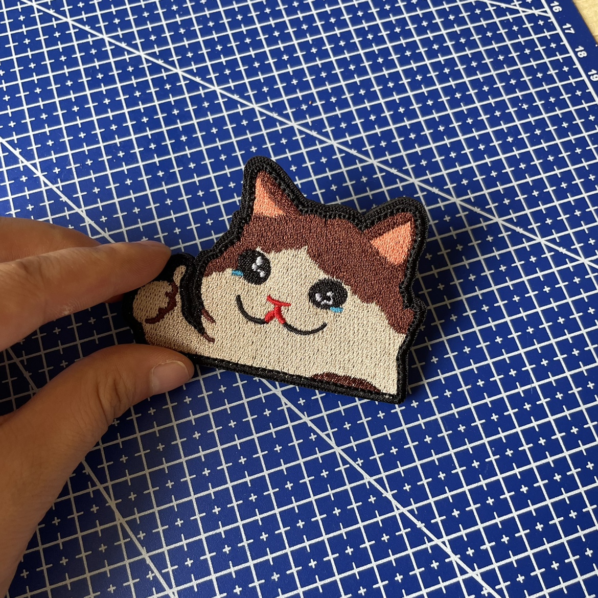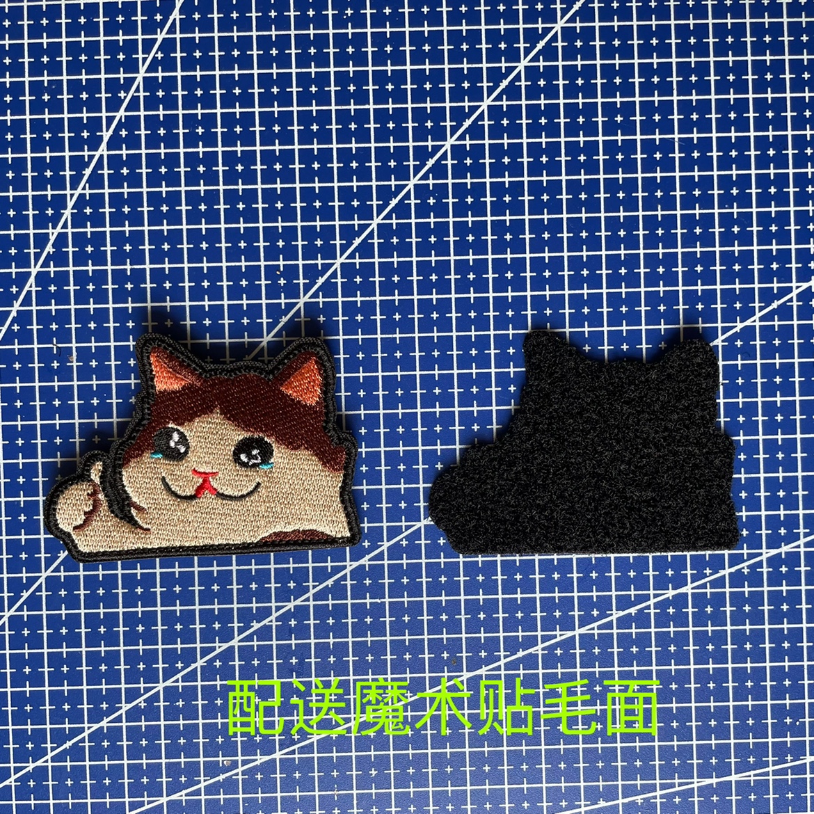 装 含泪竖大拇指魔术贴章 饰DIY包贴 刺绣创意徽章 鼓励猫士气章