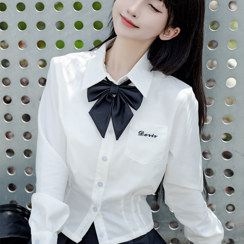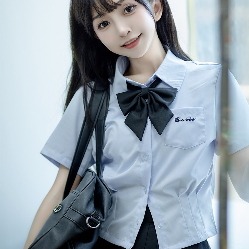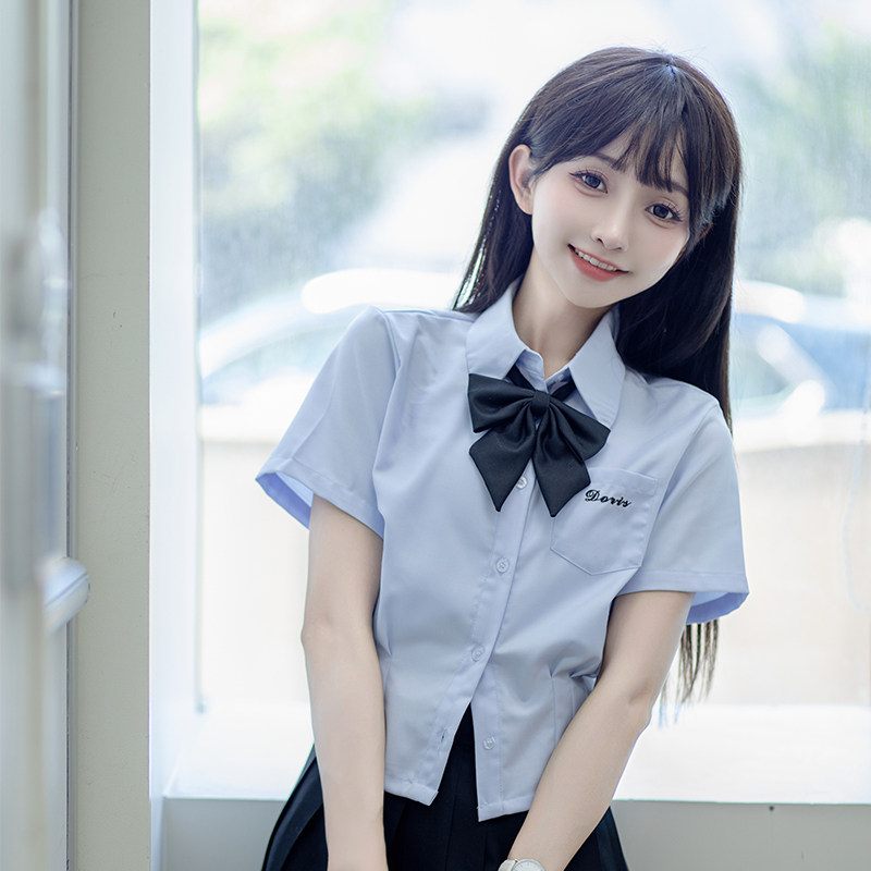 收腰长袖 修身 女泰式 短袖 衬衣 校服蓝色上衣夏季 山川会社原创jk衬衫