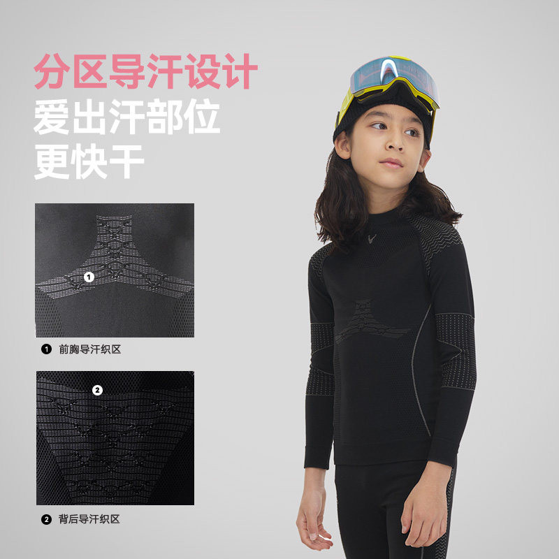 VECTOR玩可拓儿童滑雪速干衣保暖内衣套装 一体织男女童排汗压缩衣