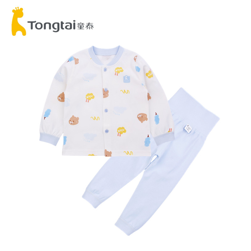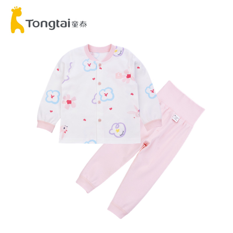 套装 36个月纯棉对开上衣高腰护肚裤 内衣男女宝宝6 童泰婴儿四季