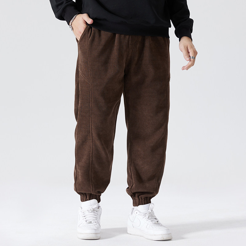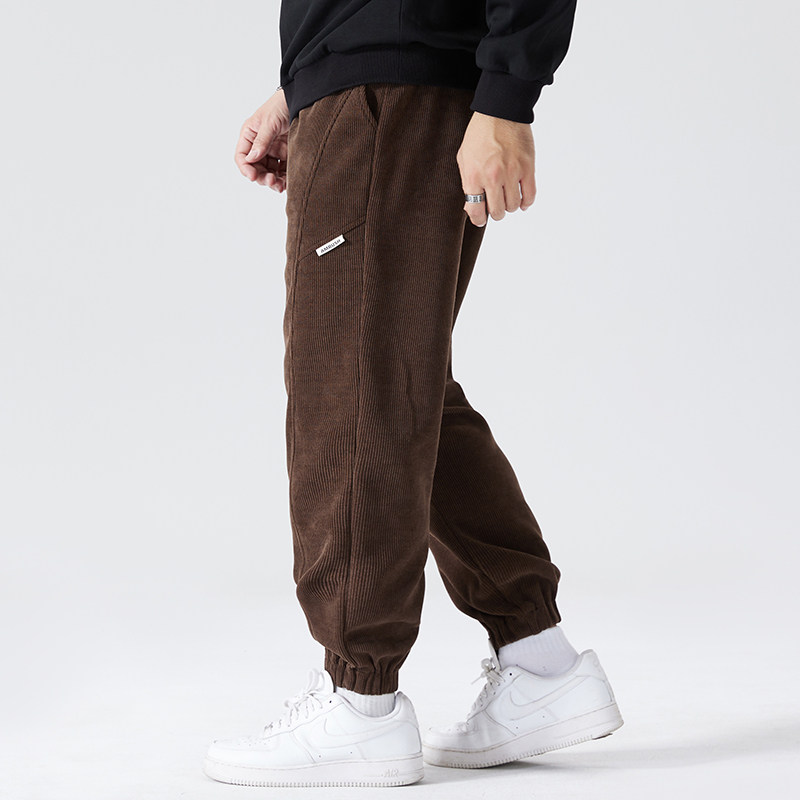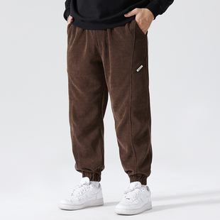新款 束脚运动裤 男士 大码 长裤 2023秋季 灯芯绒潮流宽松美式 男装