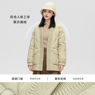 菱格鸭绒保暖 大V领羽绒服廓形时尚 雪中飞2025秋冬新款 女士短款