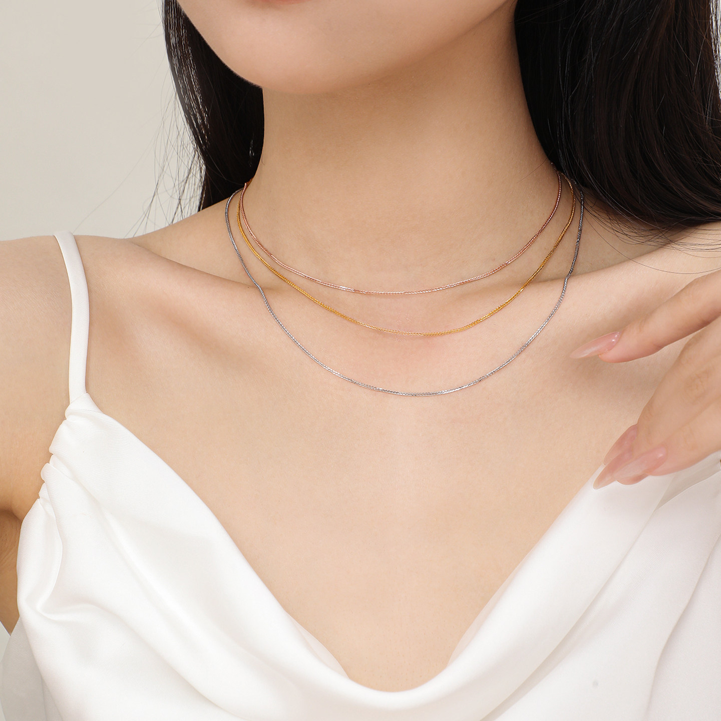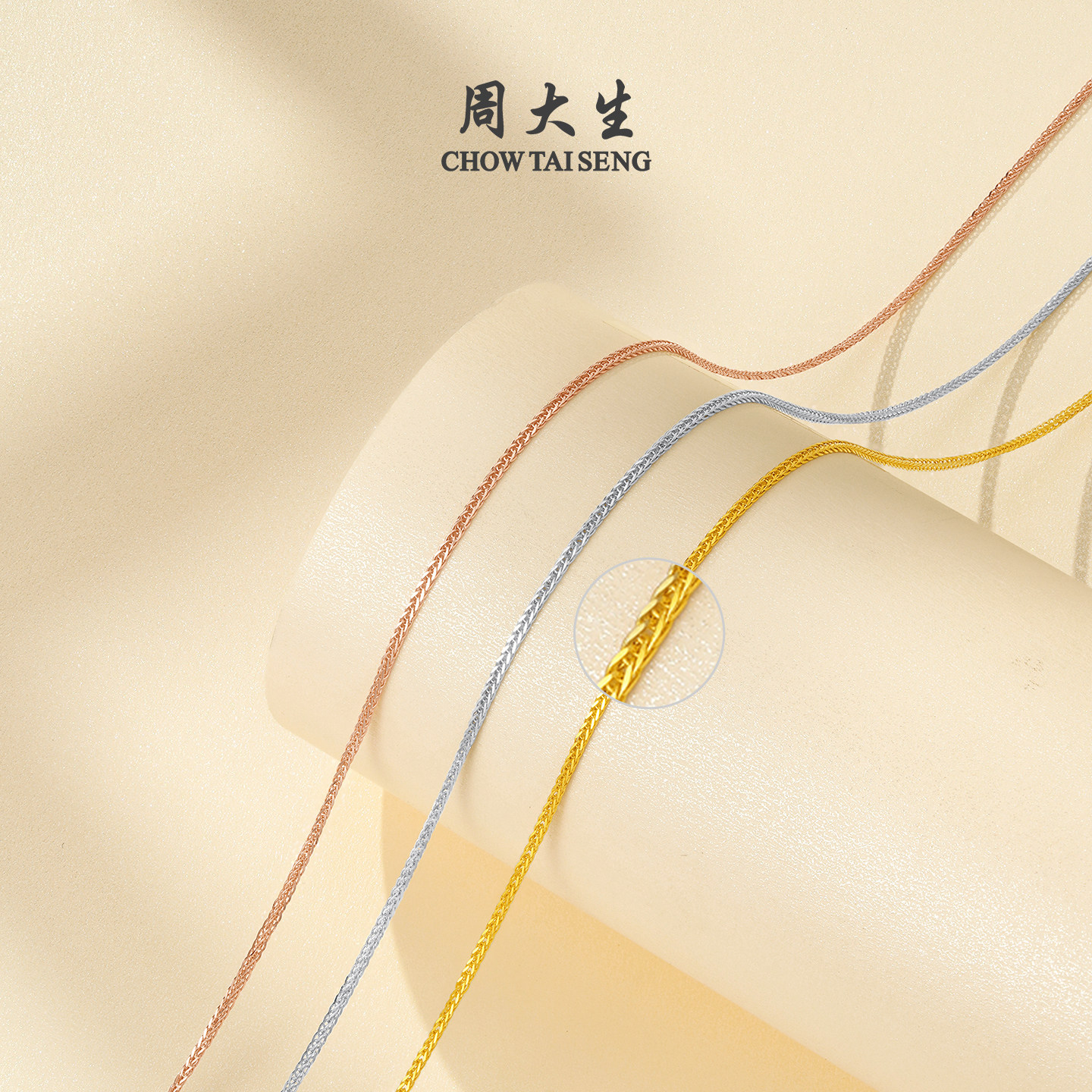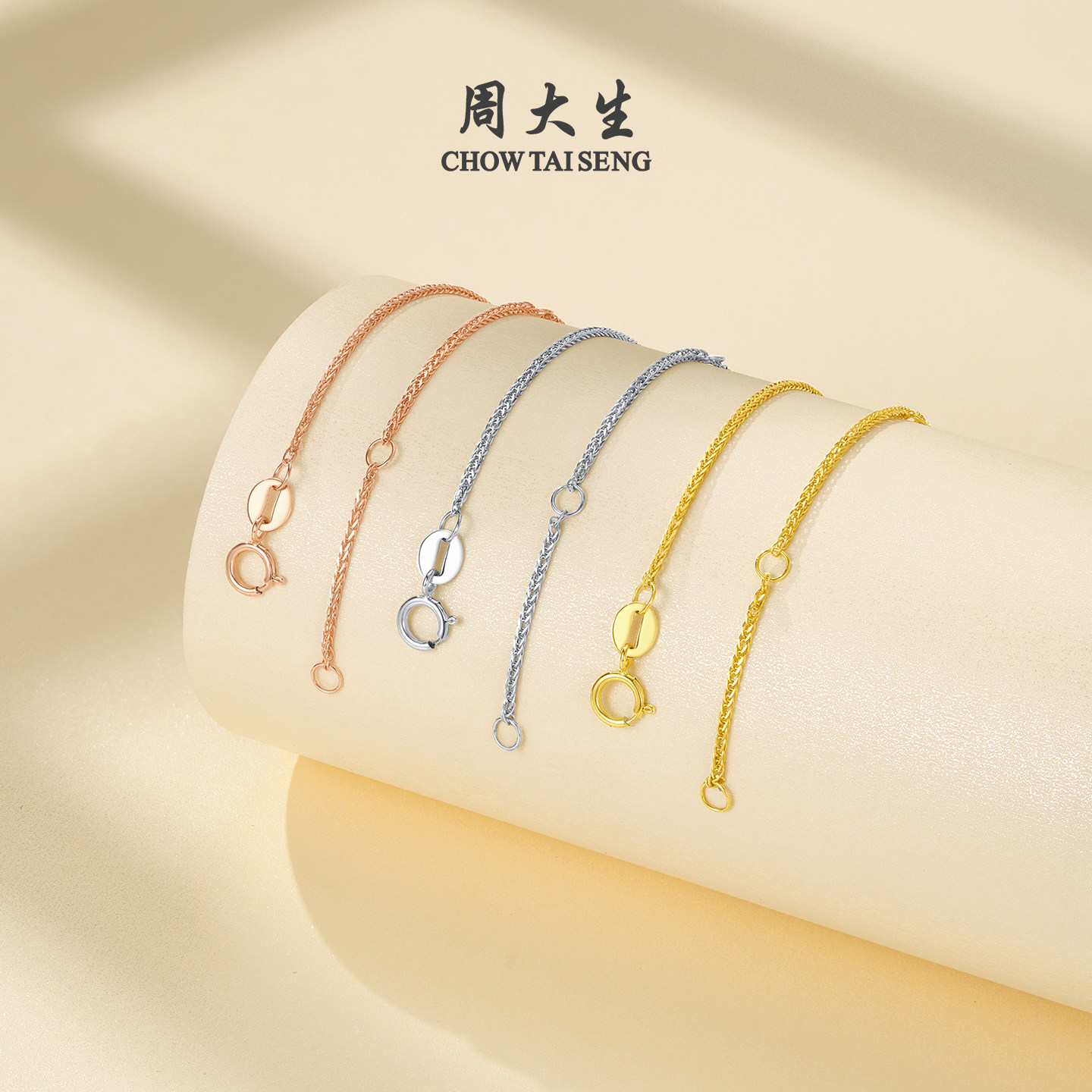 周大生黄18K金项链锁骨链肖邦链玫瑰金素链配吊坠生日礼物送女友
