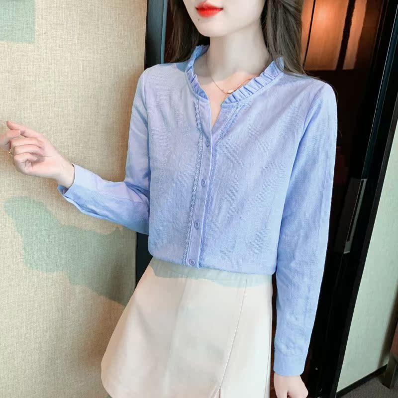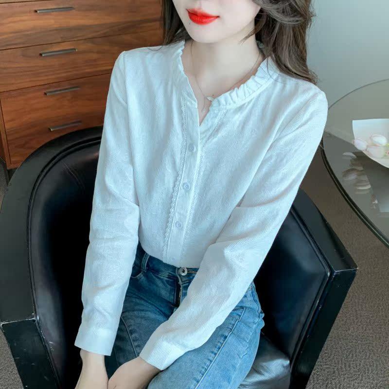 女洋气全棉百搭木耳领上衣提花女士衬衣 纯棉衬衫 春秋装 2025年新款