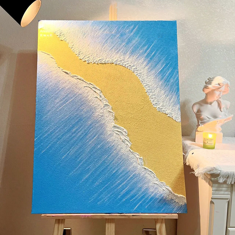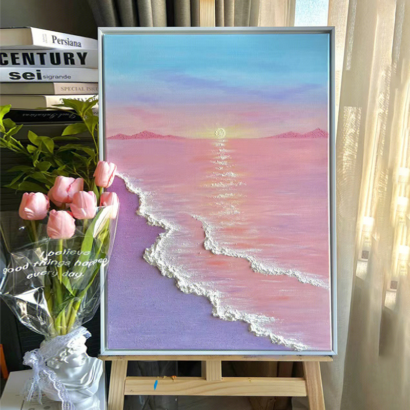 石英砂肌理画diy材料工具包手绘手工丙烯数字油画梦幻海湾装 饰画