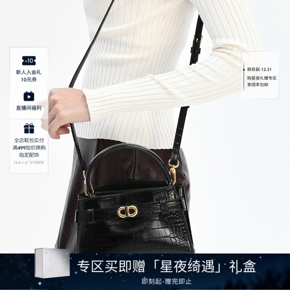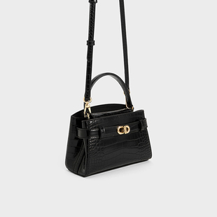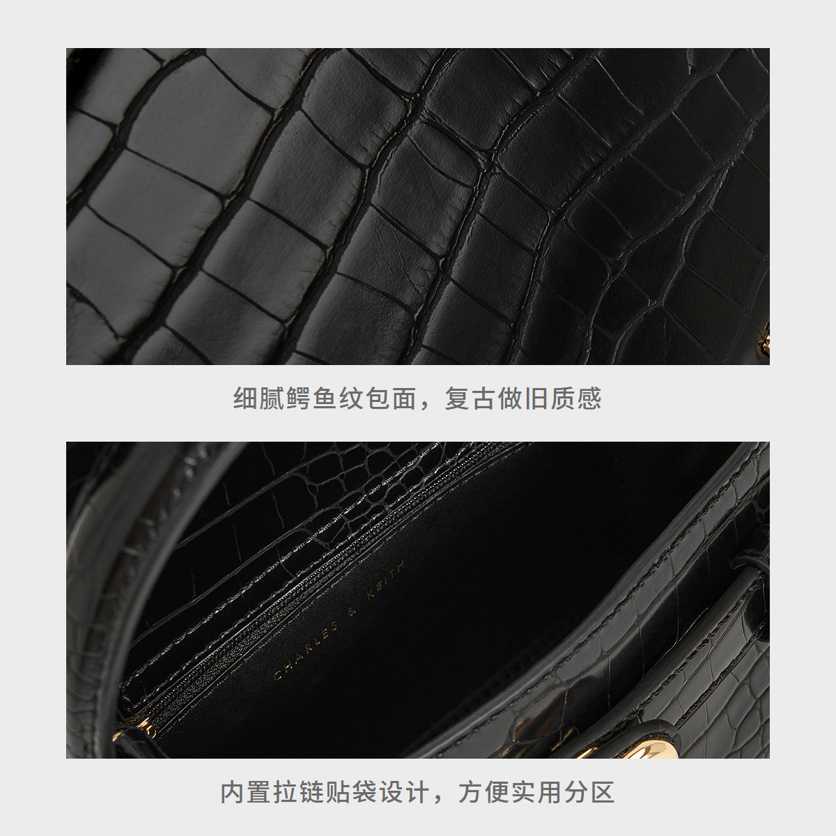 50270880 CHARLES&KEITH女包CK2 1鳄鱼纹斜挎凯莉包 新年礼物