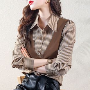 气质上衣设计感时尚 秋季 2025新款 女春秋装 女士衬衣 假两件格子衬衫