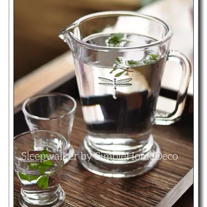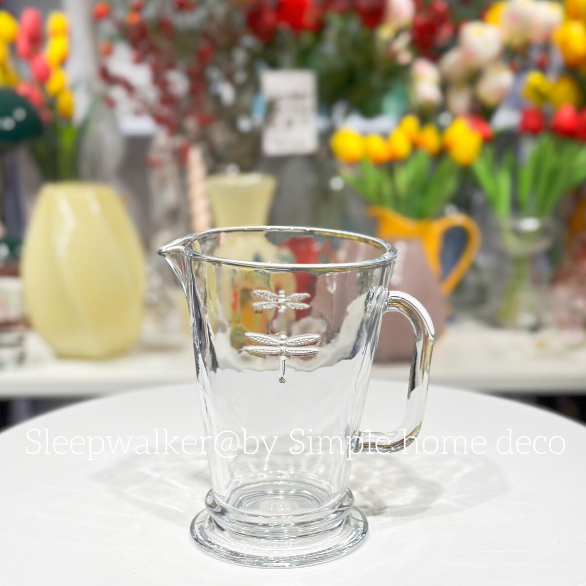外贸出口法国复古蜻蜓浮雕图案透明厚重玻璃花瓶花器把手凉水壶