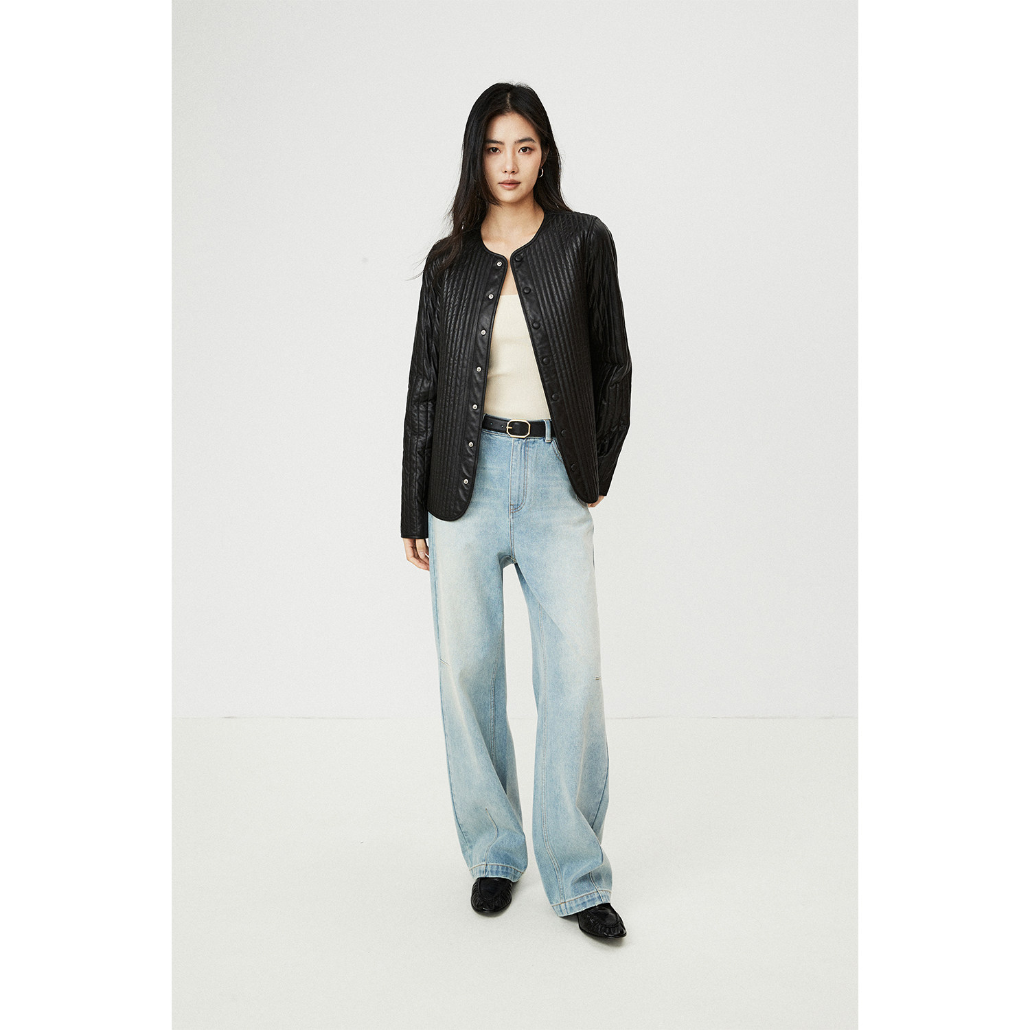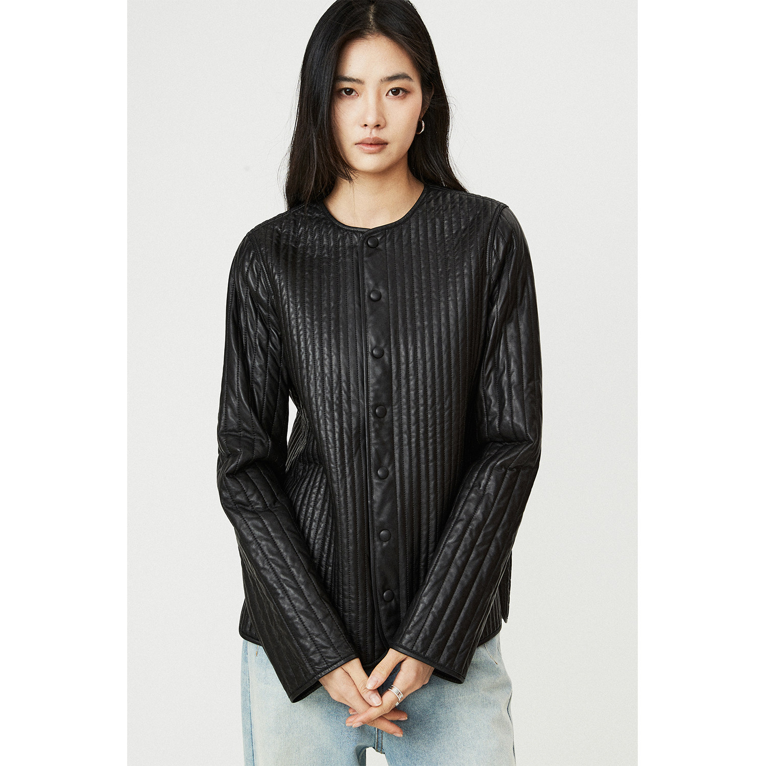 立体夹薄棉工艺压线衬衫 MRS 土耳其進口绵羊皮 早春新款 Studios