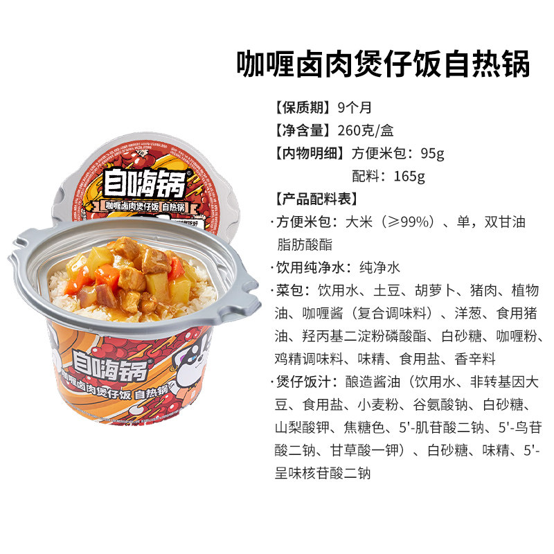 下拉详情享优惠自嗨锅自热米饭咖喱卤肉煲仔饭260g 桶宿舍夜宵锅