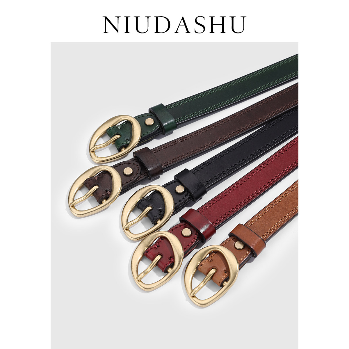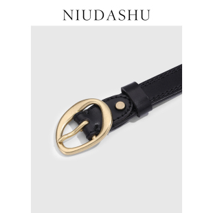 腰带女潮 饰牛皮黑色针扣裤 2026春夏新款 皮带女小众头层牛皮真皮装