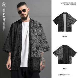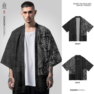 道袍kimono和服男女同款 黑色七分袖 原宿风宽松上衣 新款 2025春夏季