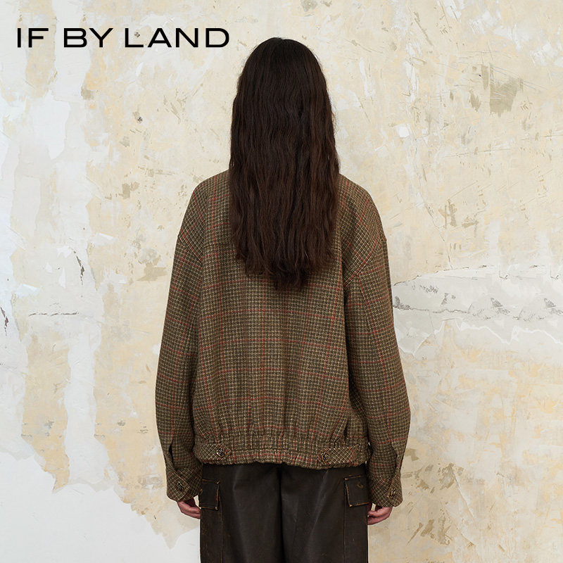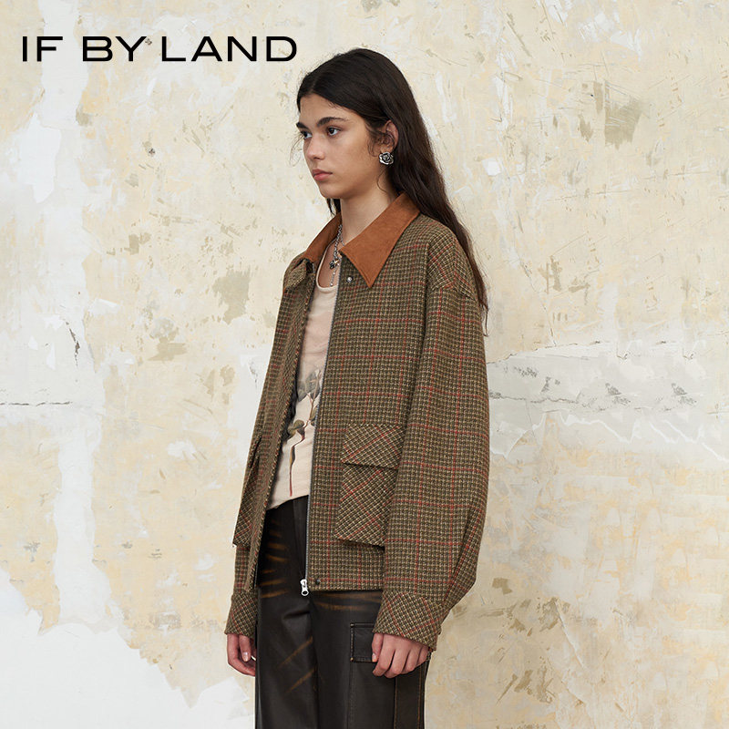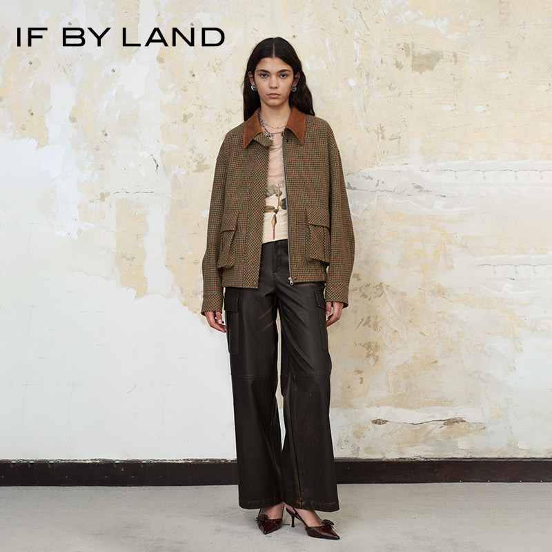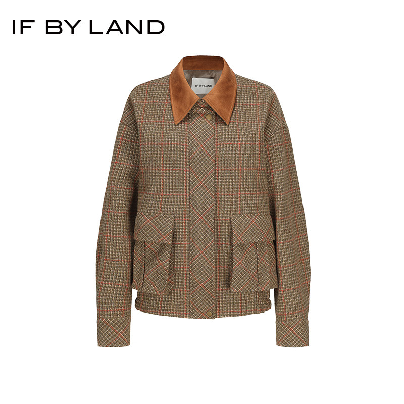 24春夏新品 设计师品牌 LAND 棕色格纹翻领贴袋外套