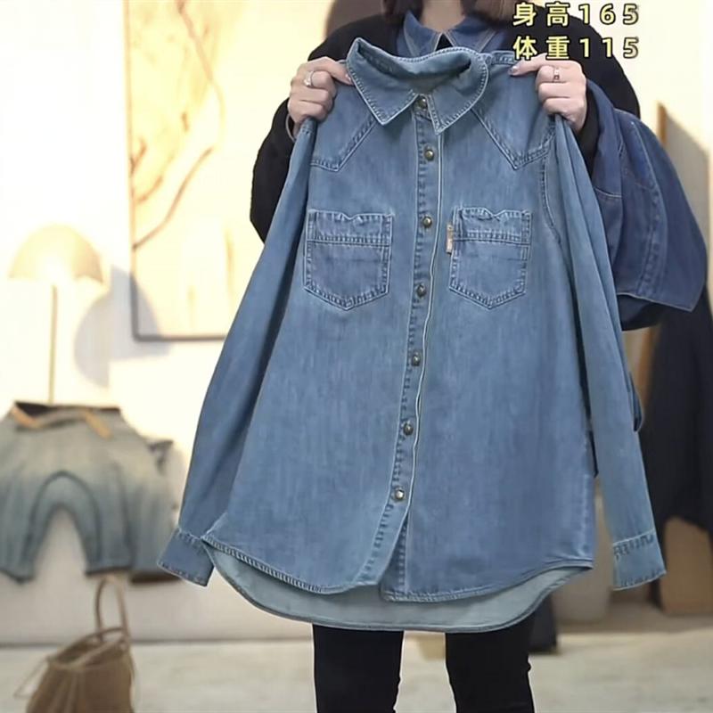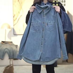 长袖 新款 牛仔衬衫 女2025秋装 叠穿衬衣上衣休闲显瘦外套 正品 装 爆款