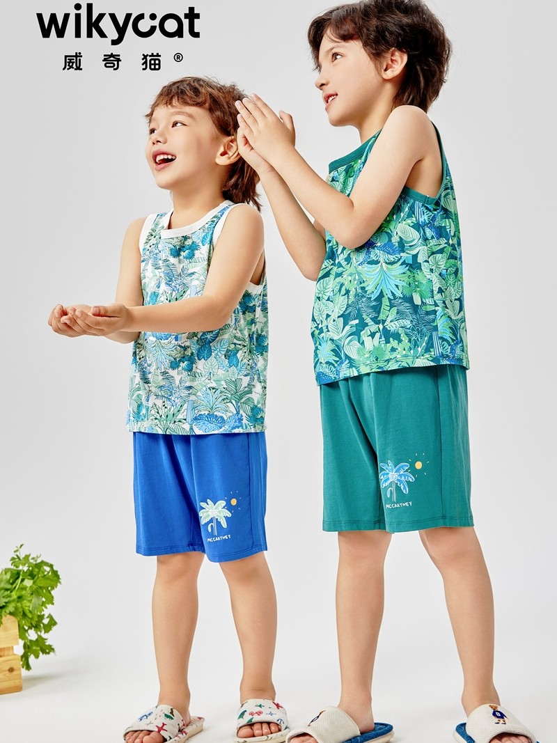 可外穿夏日椰林 家居服睡衣套装 威奇猫夏款 莫代尔男童亲子款