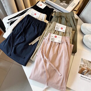 试衣间 萝卜裤 2024春季 松紧高腰梭织棉质直筒休闲裤 女 新款 日单