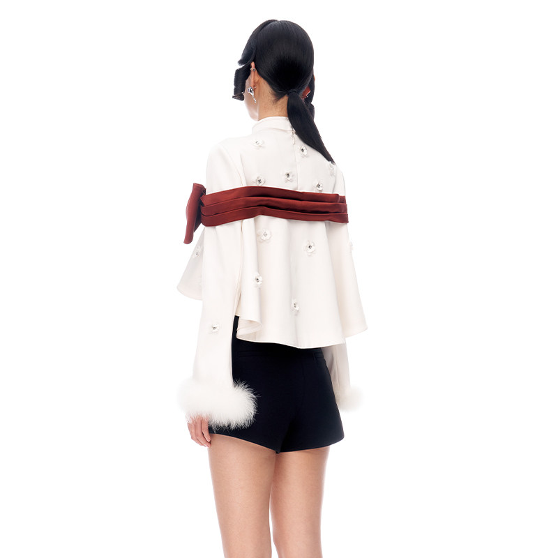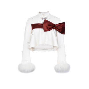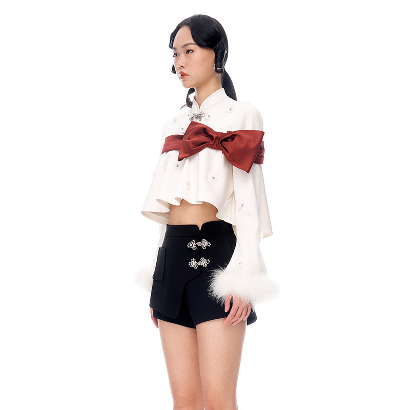 lefame拉飞姆中式 上衣 蝴蝶结撞色娃娃摆短款