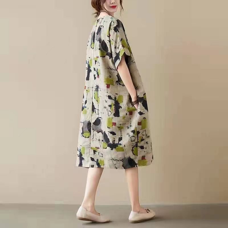 外贸女装 夏季 碎花短袖 民族风特色印花胖MM裙子宽松大码 连衣裙 新款